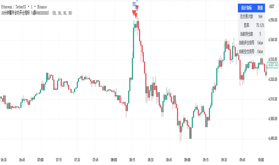 本指标适用于币安ETHUSDT现货1分钟k线图,可以通过安全等级自行调节单量。理论上,安全等级越高,单量越少,胜率越高。