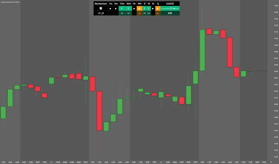 Buddy’s Momentum Matrix is a real-time structural dashboard designed to display directional alignment across multiple timeframes simultaneously.