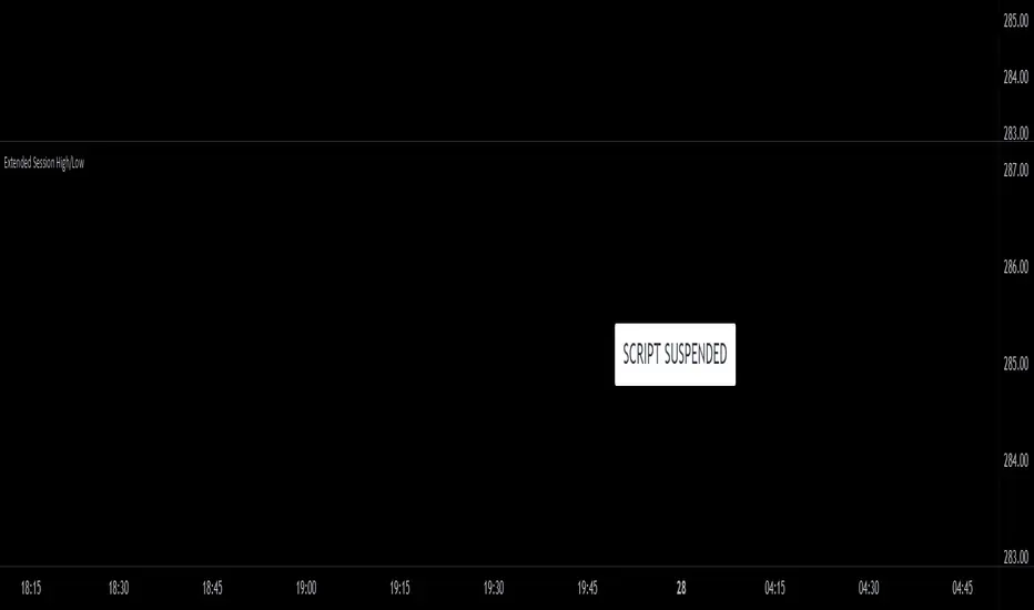 This script plots the extended session highest high and lowest low levels. It works on any time frame from 1 minute to daily.