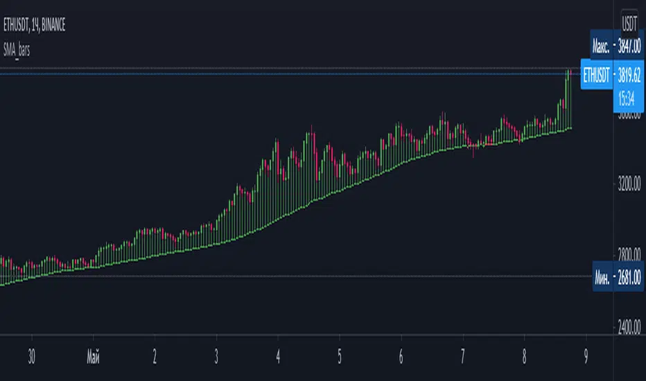 The bar construction indicator. The closing and opening values are taken as their moving averages for the same period.
