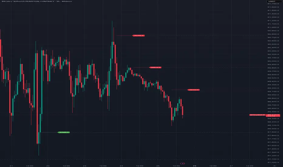 - [] Identify the Trend: Use the indicator to see recent Highs and Lows. [] Wait for the Pullback:- Green Lines (Support): Dip into a fresh green line after a confirmed swing high. - Red Lines (Resistance): Rally into a fresh red line after a confirmed swing low.