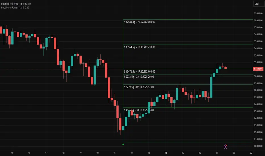 - after a Pivot Low → green Δ-boxes = “how far the market previously rose”