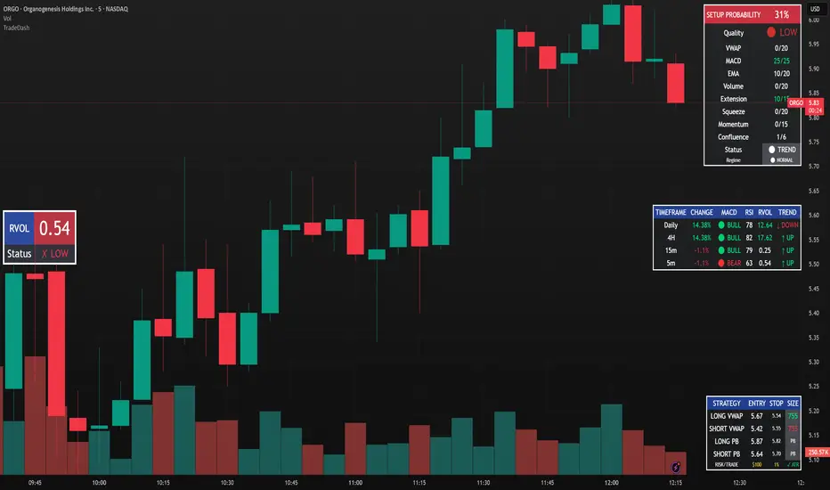 A comprehensive multi-component trading system that combines technical analysis with an intelligent probability scoring framework to identify high-quality trade setups. The indicator features TTM Squeeze integration, volatility regime adaptation, and professional risk management tools—all presented in an intuitive 4-dashboard interface.