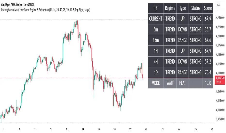 **Dresteghamat-Multi timeframe Regime & Exhaustion**