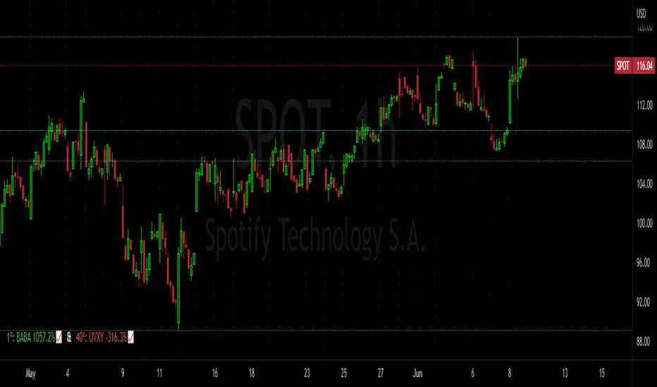 - Assess whether entry for calls or puts is appropriate based on price action on realtime view between 2 tickers, one which will be the highest (strongest) trend up and the other going the lowest (weakest) trend possible, all at the same time!