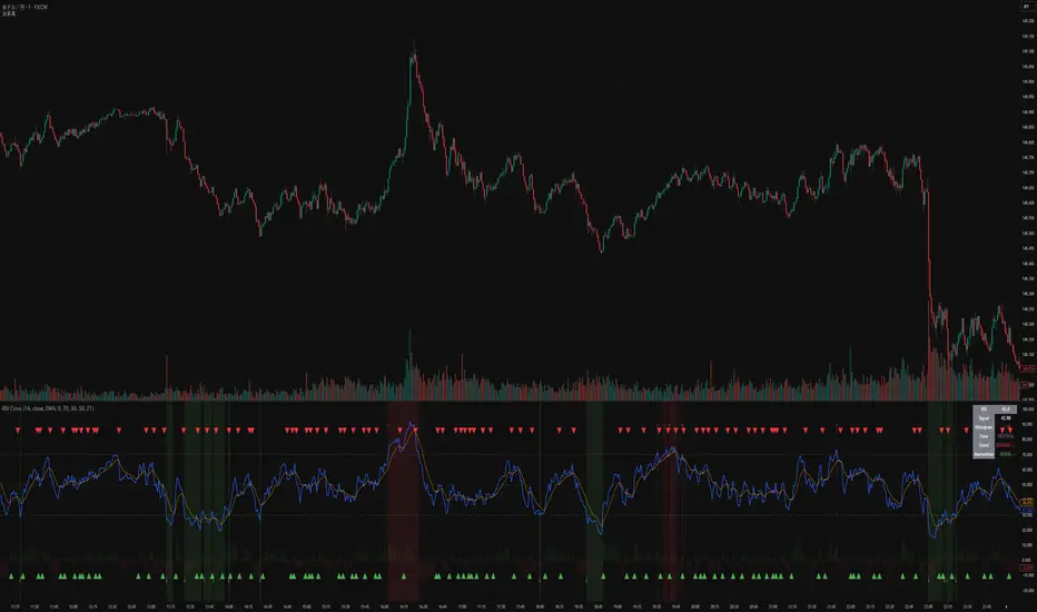 RSI Length: 14, Signal Length: 9, Overbought/Oversold: 70/30