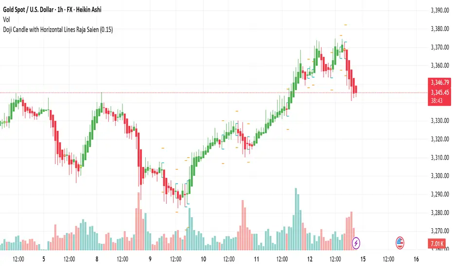"Doji Candle with Horizontal Lines by Raja Saien" is a powerful visual tool that helps traders easily spot Doji candles — key signs of market indecision or potential reversal.🔍 Key Features: