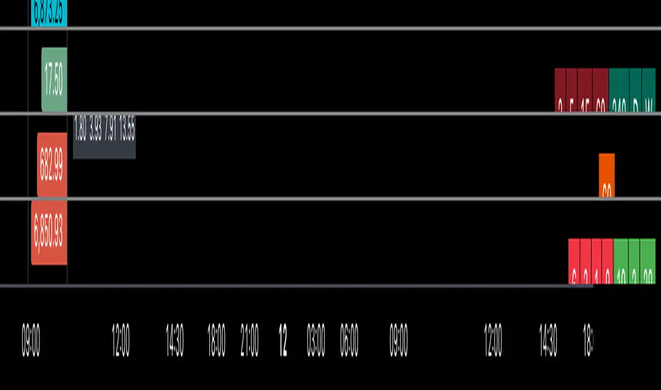 Shows ATR value on the 2/5/15/1H timeframes. Useful for setting stoplosses