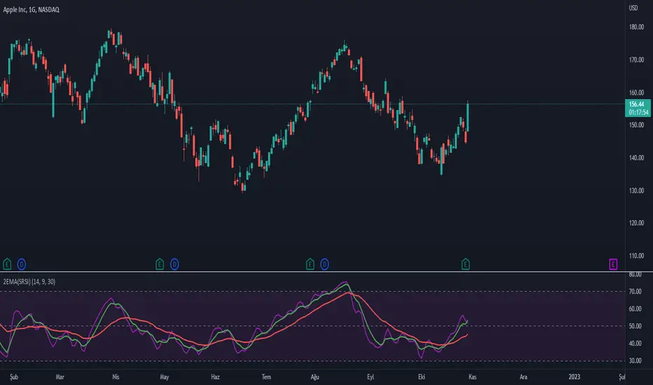 This is just a educatinal work. I just want to identify the trend direction on RSI so I smoothed 2 times RSI with MA and add to RSI two ema. Red line show us the trend direction and and green line is working as a support or resistance.