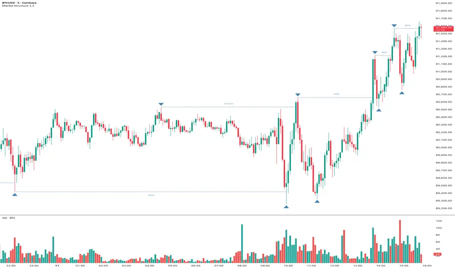 By visualizing these breaks directly on your chart, you don't have to guess. You can see at a glance whether the market is trending smoothly (consecutive BOS) or showing signs of reversal (CHoCH).