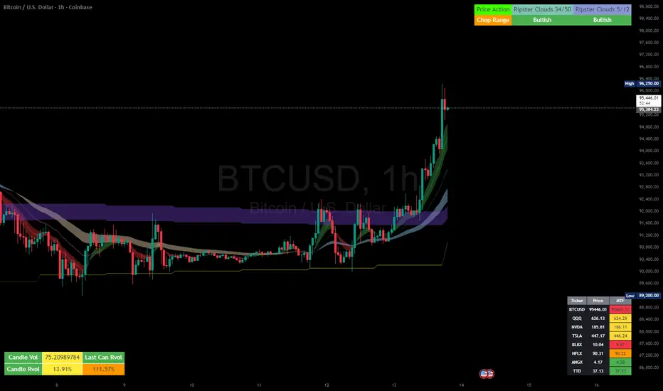 Overview This script is a custom Watchlist Scanner designed to help traders efficiently monitor up to 8 tickers simultaneously for interactions with the Ripster47 MTF (Multi-Timeframe) Clouds.