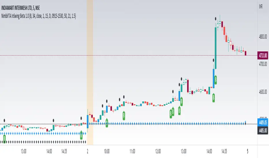 This indicator is specifically to be used for Intraday (Time Frame 5M or 3M ) and Swing Trades (Time Frame 30M), that’s why the name “Intraday + Swing (InSwing)”