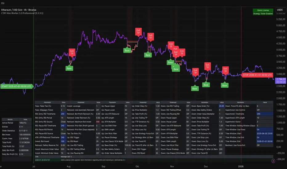 The CTAY Hive Worker 3.3 Professional is an advanced TradingView strategy designed for systematic, transparent, and fully deterministic trading.