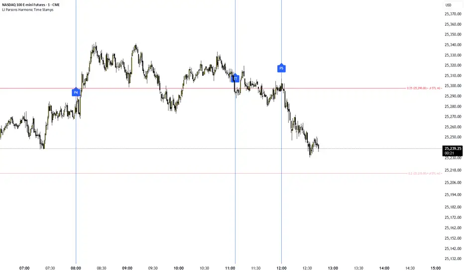 In essence, the script turns a period of time into a harmonic structure, with each line and label acting like a “note” in the market’s temporal symphony. It’s a tool to visualize and test whether price behaviour aligns with the resonant fractions hypothesized in MRT.