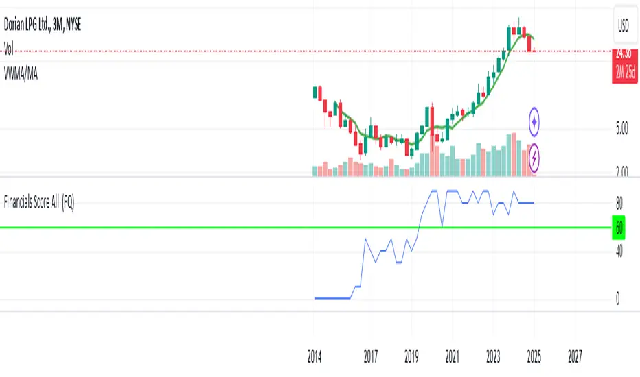 This Pine Script calculates a financial score for a specific stock, based on various financial metrics. The purpose is to provide a comprehensive numerical score that reflects the financial health of the stock. The score is calculated using multiple financial indicators, including profitability, valuation, debt management, and liquidity. Here’s a breakdown of what each part of the script does: