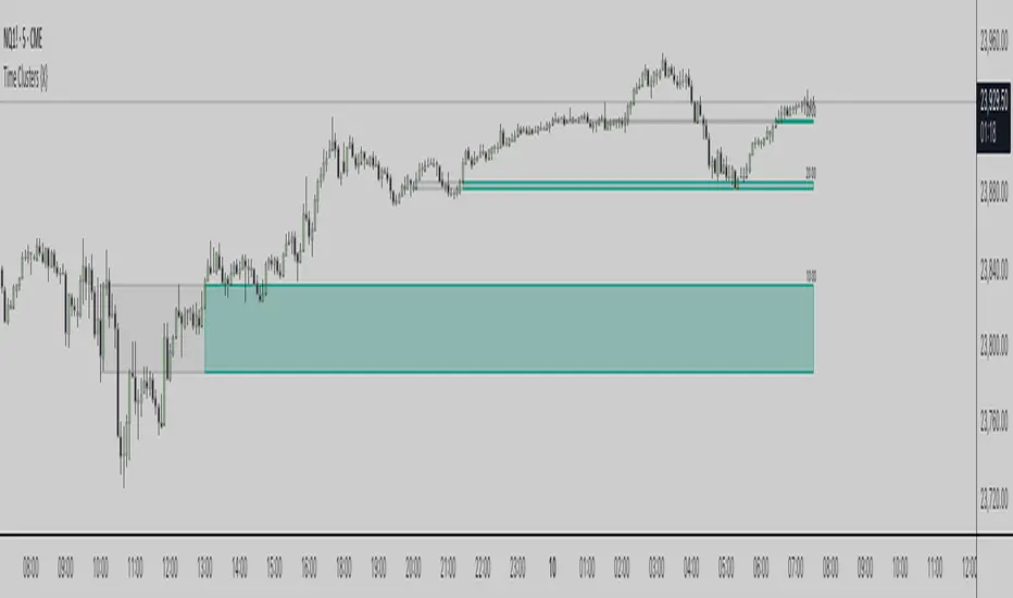 Time Clusters is a sophisticated Pine Script indicator engineered for precision session-based market analysis. It creates visual time zones at user-defined session periods and dynamically tracks price bias evolution using institutional-grade detection logic. The tool empowers traders to identify critical time periods and monitor market sentiment transitions with professional-grade accuracy.
