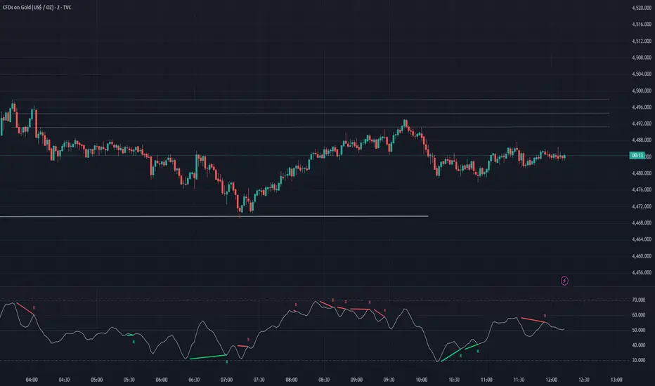 "R" Label: Indicates a Regular divergence (Reversal). Be ready for a potential change in trend direction.