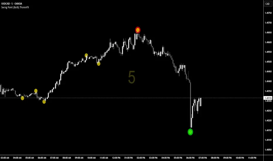 The Swing Point (Bulb) ThorenFX indicator is a precision-based market reversal framework engineered for institutional-grade analysis. It identifies and highlights critical swing points—where price momentum pauses, reverses, or accelerates—by plotting dynamic “bulbs” on chart structures.