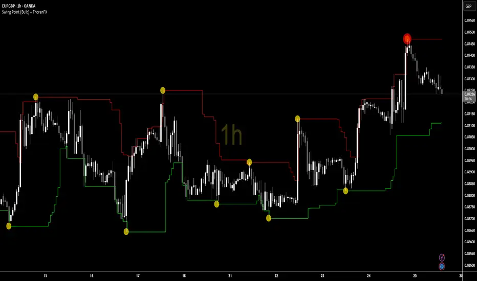 The Swing Point (Bulb) indicator by ThorenFX, developed under the Trinity Traders brand, is a premium institutional-grade market structure framework designed to detect real swing reversals with pinpoint accuracy.