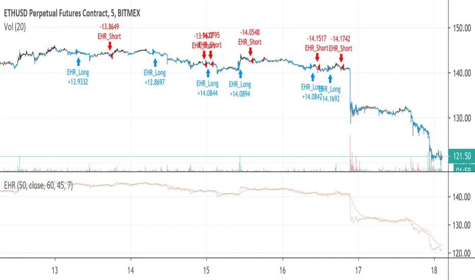 Another simple strategy. Crossing EMA & Hull MA and the level of RSI (overbought/oversold) defines long or short.