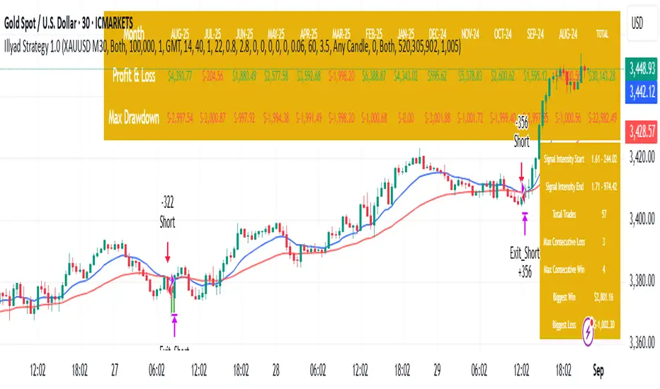 The Illyad Strategy 1.0 optimised for XAU/USD (Gold) on the 30-minute timeframe (IC Markets feed).