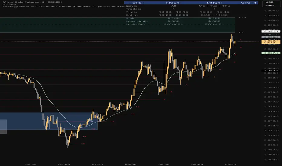 The Strategy Sheet — 4 Columns / 8 Rows is a compact and highly customizable table-based tool for traders who want to keep their trading plan, rules, and session settings directly visible on the chart.
