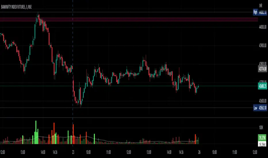 This indicator is based on the concepts popularized by OptionsScalper123 "Siva" of OiPulse. His ideology Is that large moves come after high volume candles. For Nifty, high volume is considered to be a candle above 125k volume and for BankNifty it’s 50k.