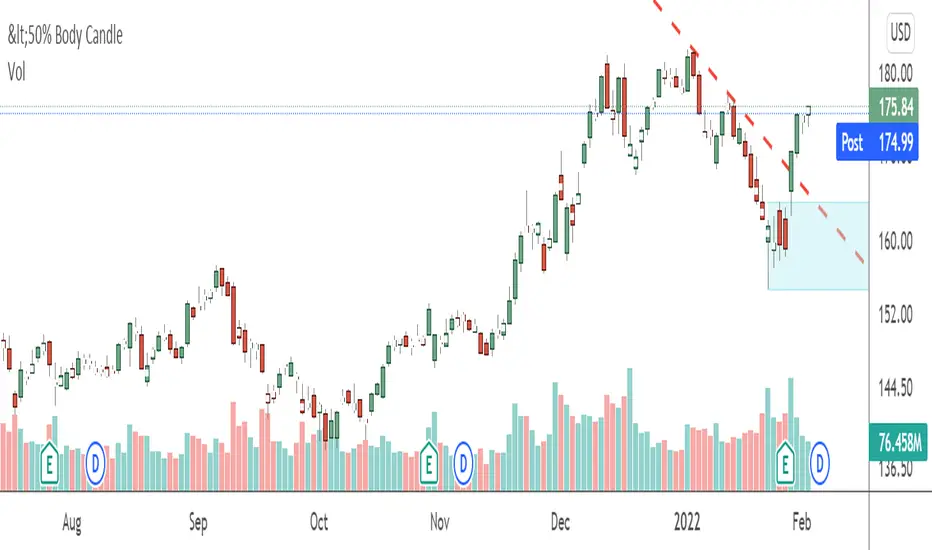 Script to identify candlesticks with less than 50% body of total high low candlestick. Places a dot inside the candle. Make sure indicator is moved in the top of Objects Tree so the dot will not be hidden behind the candlebar.