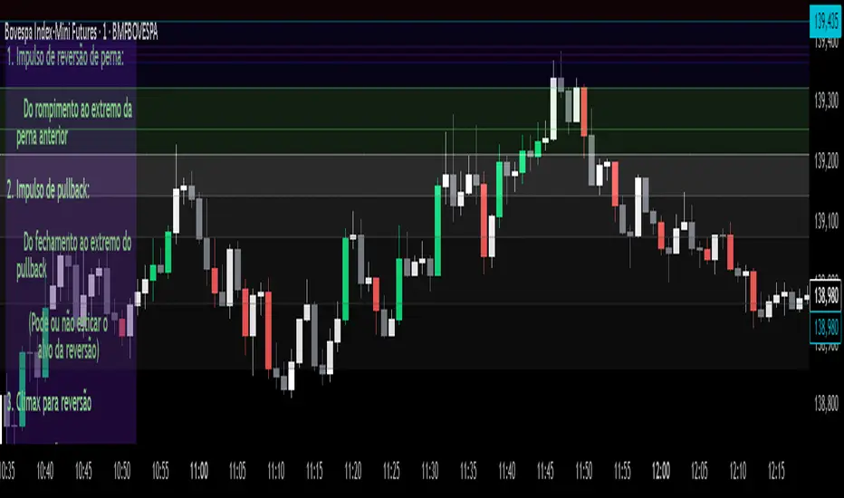 Redraw every bar in order to fill every gap from previous period. Although you lose information about ranges in which trades really went on, this script is meant to help to understand the forces that really push and pull the price and make the next moves happen, in the flowing chain of causes and effects, proving that Causality is the ultimate truth, besides Price.