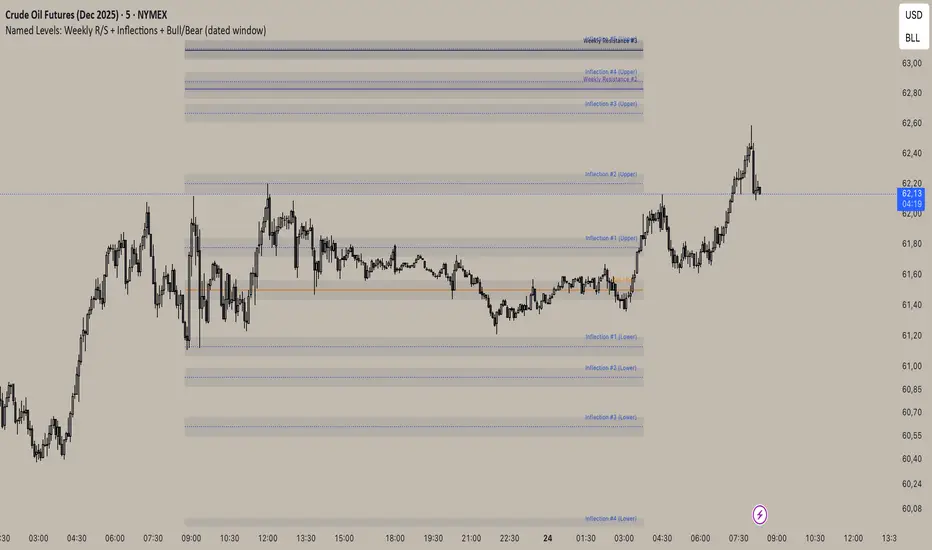 Display: Weekly Support/ Resistance, Inflection Levels, Bullbear
