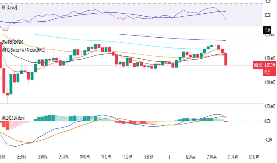 – If AI = SELL and 3+ higher-TF RSIs just crossed < 50 → consider short.