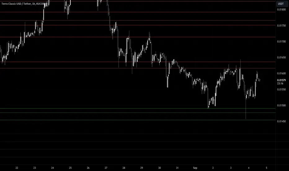 - **Green Lines**: Represent support levels below the current price. These are potential areas where buying interest may increase, and the price could bounce upwards.