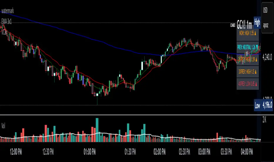 Changes color when volume spikes, adjustable thresholds for volume and color options.