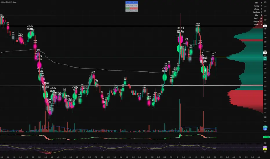 The indicator is designed to work across multiple timeframes. On higher timeframes, more grey bubbles are expected due to natural auction and balance behavior. Colored bubbles on higher timeframes represent sustained participation rather than short-term momentum. Visual density and performance are automatically adjusted on higher timeframes.
