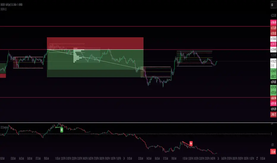 This indicator combines Cumulative Volume Delta with divergence signals to help spot potential market reversals and trend changes. It visually highlights key shifts in buying and selling pressure, making it easier to see when momentum is building or fading and helping you make more informed trading decisions.
