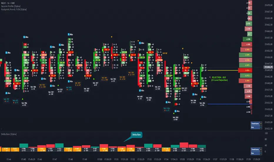 Delta Bars [Elykia] is an "Order Flow Oscillator" designed to instantly visualize buyer and seller aggression within every price move.