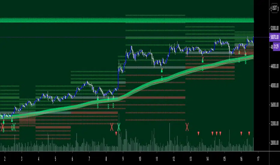 Overview: This is a intraday/scalp trading Indictor works using MTF- MA,MACD,RSI for trend ,SRSI For Entries , Murrey Lines for Targets and ATR For Stop Loss , it is designed for all type of markets (crypto, forex, stocks, commodity etc.) and works on all commonly used timeframes .