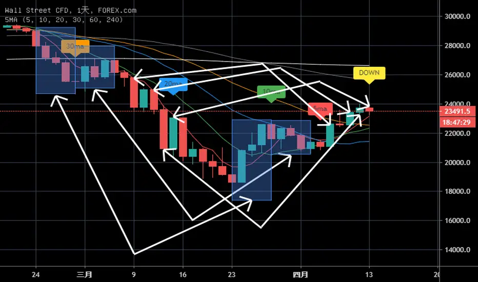 使用20MA的扣抵蹺蹺板來判斷今日可能是UP或DOWN