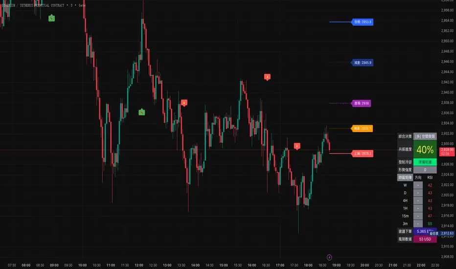 多維權重共振矩陣:系統同步監測從週線到 3 分鐘線的 6 個時區。透過計算「綜合決策分 (final_p)」,確保每一個發射信號都具備宏觀與微觀的共振基礎。