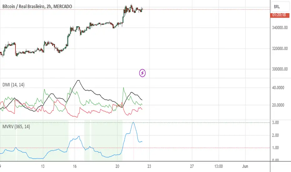 The background turns green when the MVRV Ratio is above 3, signaling potential selling opportunities.