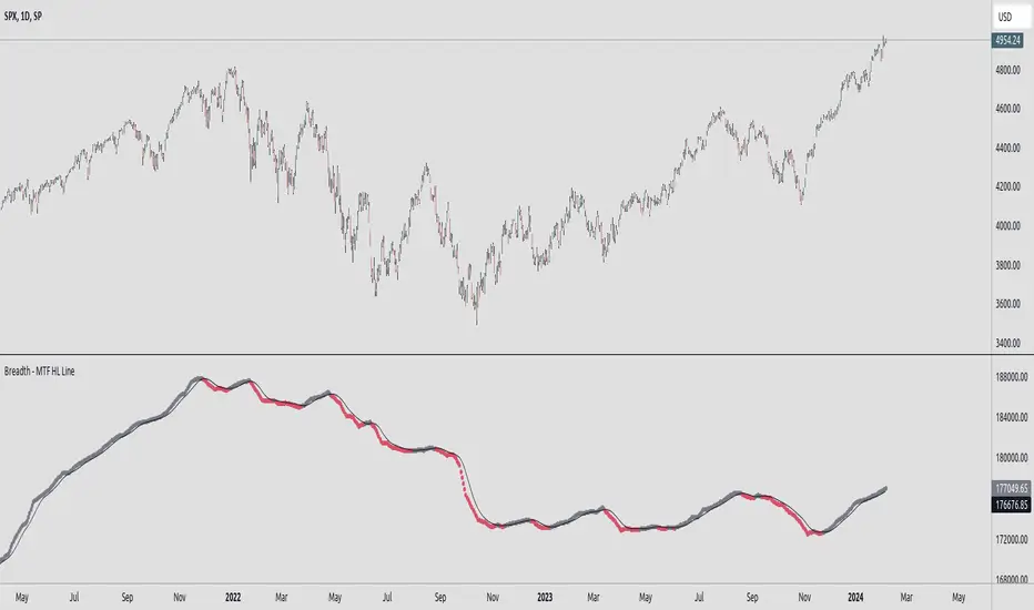📈 Plots cumulative 52W New Highs - New Lows with various timeframes/exchanges.