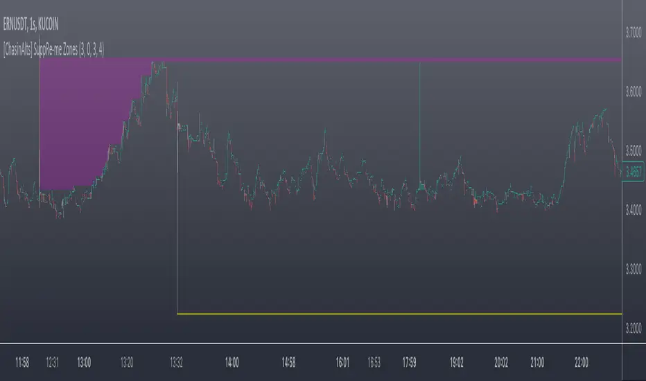 Hello fellow tradeurs, I couldn't find one similar on TV so wanted to make it.. Took me a little while to figure some things out as I am in new coding territory with this script. I had a hard time finding ways to make only a partial zone/box disappear if price only crossed part of it. Nonetheless, I figured it out so I hope you enjoy the outcome. Now, allow me to take a second to first explain the utility that is this script...or at least expose my reasoning when I decided to go ahead with this little project and take the precious time necessary to learn parts of pine that I did not previously know how to deal with. Ultimately, I built this for the 1s-15s TF(except for the "Consecutive Bars/Large Bars" Boxes...Those were meant to use on both these second TFs and Higher TFs....[don't worry, Ill explain in a sec]). The reasoning behind all of this was to give me a more definitive answer to all of my questions regarding the speed at which it would take price to revisit areas that it very abruptly went to/left on a VERY short TF (like the 1sec charts)...or even if it EVER would). To determine this I wanted to draw lines starting at the end of large wicks, draw boxes spanning the entire span of large wicks, and lastly to draw boxes spanning the entire span of very large bodies. For this last one, not only did I want to draw a box on a single candle that possessed a large body but also if there were consecutive red candles in a row, their bodies could be summed up and if this summation exceeds the minimum body % threshold then it too counts just like a single large candled body would if it was larger than the threshold. All in all I really enjoyed this script and most importantly the data that it produces. What I found after coding the script was that (again on the 1 sec- 15 sec charts) was that price very quickly (relatively speaking I suppose) came back over these box/zoned areas and that the lines drawn from the tip of the large wicks would at some point in the near future act as very good support and resistance for price to either bounce off of or breakout from.