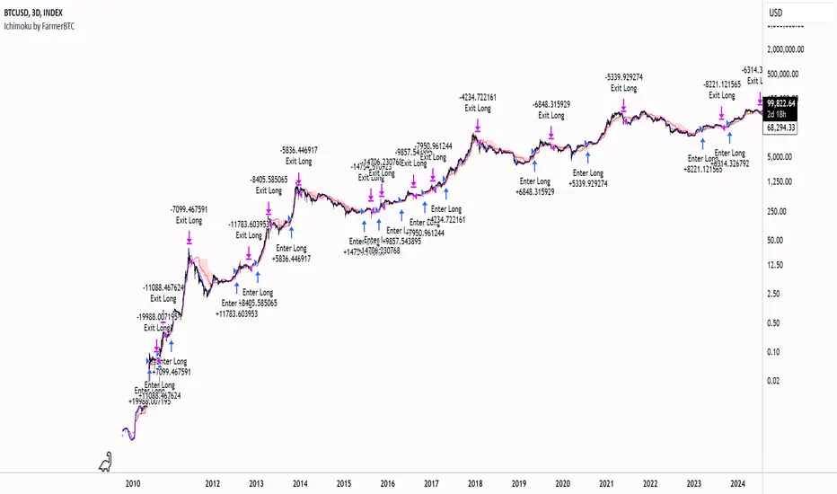 This strategy, "Ichimoku by FarmerBTC," is provided for educational and informational purposes only. It does not constitute financial advice and should not be relied upon as such. Trading and investing involve substantial risk, including the potential for losing more than your initial investment. Past performance is not indicative of future results. Always consult with a qualified financial advisor before making trading or investment decisions. The author of this strategy is not responsible for any financial losses incurred through its use.