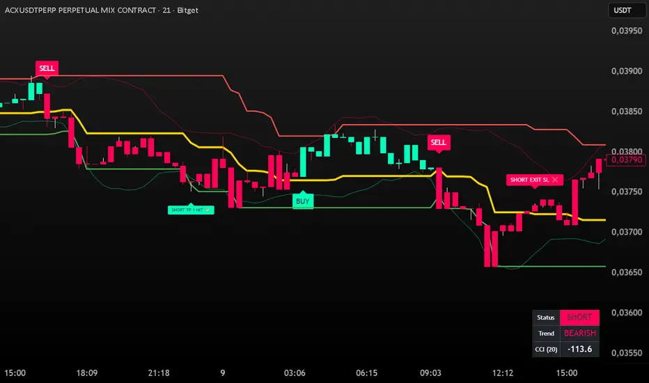 Smart Exit Labels: Explicit markers on the chart (e.g., "LONG EXIT TP 3 ✅") show exactly where and why a trade was closed.