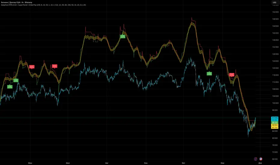 Adaptive ATR% Grid + SuperTrend + OrderFlip