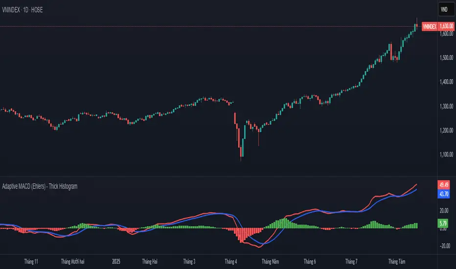 Because the cycle is adaptive, the indicator becomes more responsive in volatile markets and more stable during sideways conditions, reducing noise compared to the standard fixed-period MACD.
