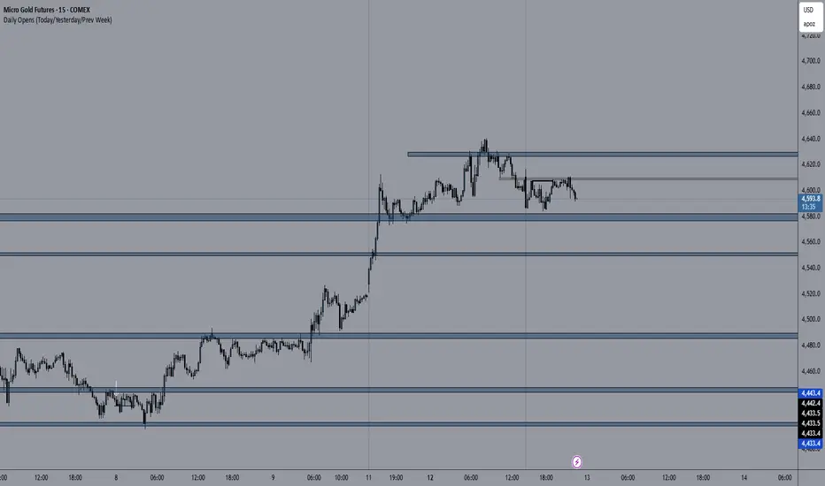 Market open markers for Volume profile traders, Marks Current Day open, Previous Day open, Previous Week open.