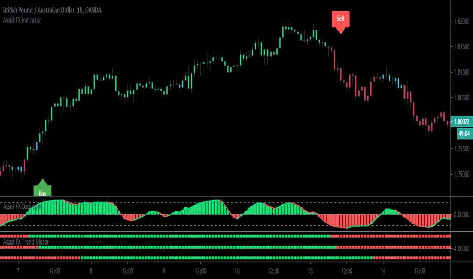 When all criteria is met in the code our signals appear, You will get a Red Sell signal for if the market is looking to go bearish and if you get a green buy signal the market is looking to go Bullish.