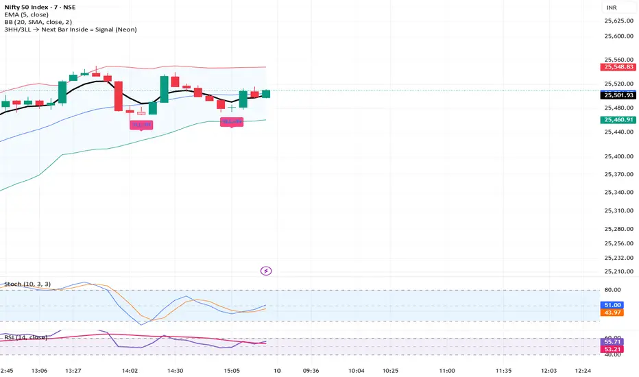 3HH/3LL → Next Bar Inside = Signal (Neon)