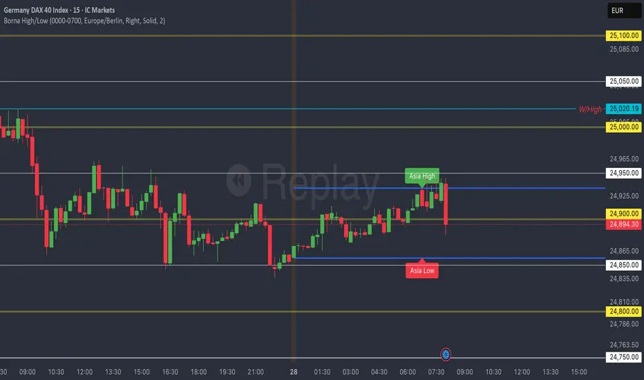 Borna High/Low is a clean and precise indicator that automatically plots the Asian session High and Low levels on GER40 (DAX) directly on the price chart.